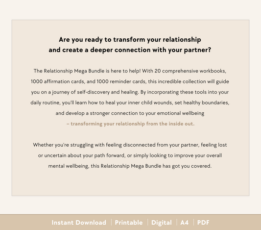 ✍️ Worksheet Included: Deepen your engagement and commitment to your relationship journey with the included reminders worksheet. Writing your chosen reminders 10 times each helps ingrain them into your consciousness, magnifying their impact and effectiveness in your life.